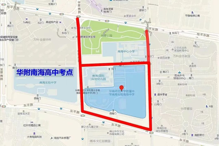 南海区共设14个考点,为确保考场环境安静、考点周边路段顺畅,交警部门将对这些路段实施交通管制:
