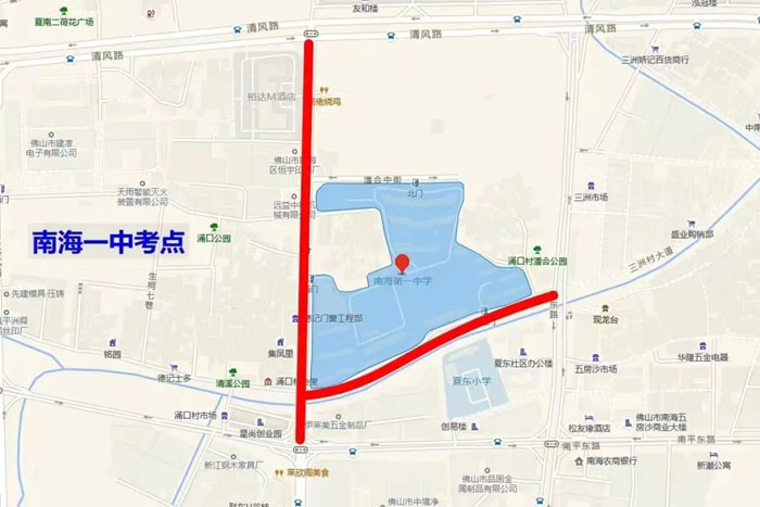 甘河路(里水大道南至环镇南路双方向)、怡和一路至旗峰小学路段实施交通管制,禁止车辆通行(考试工作车除外),请广大驾驶员绕道里水大道通行,考场周边路段禁鸣喇叭。