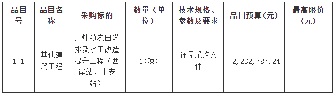 合同包1(丹灶镇农田灌排及水田改造提升工程(西岸站、上安站)):