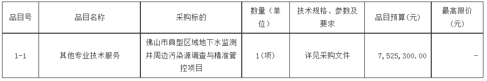 项目名称:佛山市典型区域地下水监测井周边污染源调查与精准管控项目(二次)