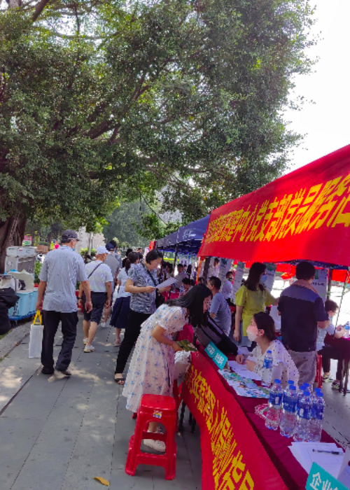 为进一步落实省、市、区人社部门对用人单位和异地务工人员的关爱,为单位与务工人员搭建直接洽谈的渠道与平台,促进高质量就业,5月31日下午,荔湾区金花街道综合服务中心联合区人社局就业中心、广州传宇传媒公司在陈家祠广场举办2023年“零距离”就业援助招聘会。