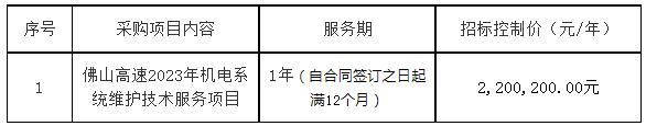 项目名称:佛山高速2023年机电系统维护技术服务项目