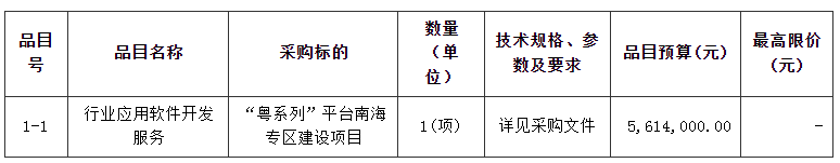 合同包1(“粤系列”平台南海专区建设项目)特定资格要求如下: