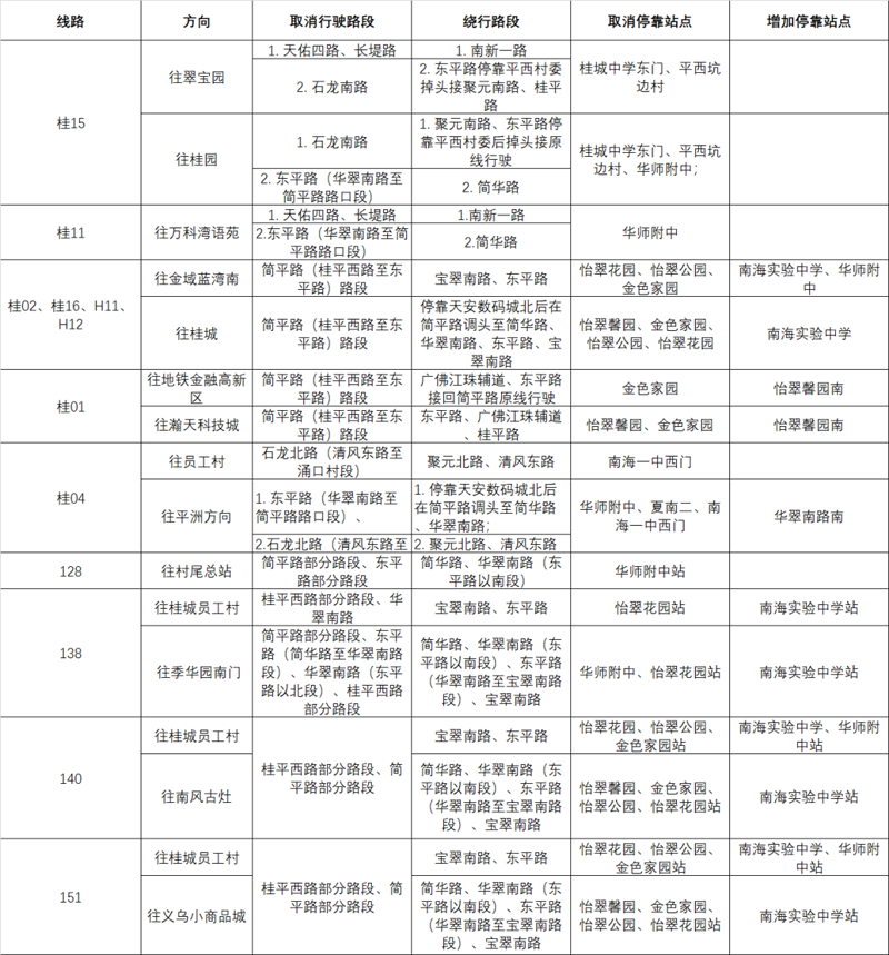 绕行线路:桂15、桂11、桂02、桂16、H11、H12、桂01、桂04、128、138、140、151线