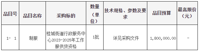 采购包1 (桂城街道行政服务中心2023-2025年工作服供货资格) :