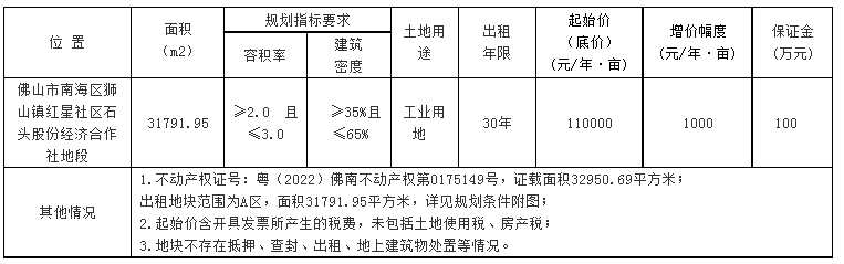 南海区狮山镇红星社区石头股份经济合作社地段网上挂牌出租公告