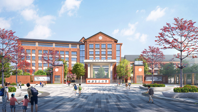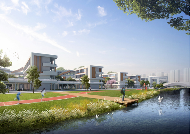 其中,规划待建小学将采用流线型建筑设计,造型形态简洁舒展,与周边水乡蜿蜒河道相映衬,打造兼具岭南韵味与现代特色的美育校园。
