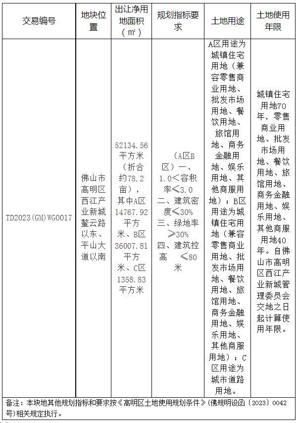 十、自本次公告起至网上挂牌截止期间,如有关于本次地块网上挂牌文件的修改、澄清、说明等将通过网上交易系统、佛山市公共资源交易网发布,请有意参与竞买者密切留意。其它未尽事宜,详见该地块的交易文件。