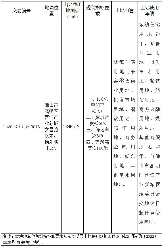 佛山市高明区西江产业新城文昌路以东、怡乐路以北国有建设用地使用权网上挂牌出让公告