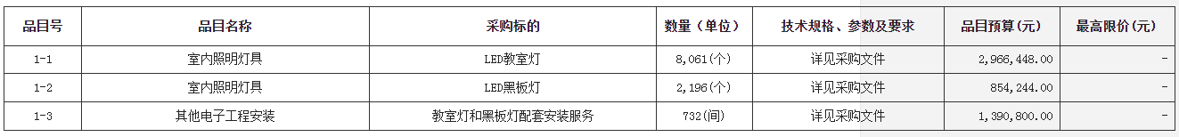 品目号 品目名称 采购标的 数量(单位) 技术规格、参数及要求 品目预算(元) 最高限价(元)