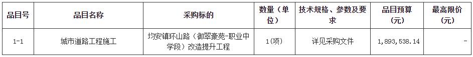 合同包1(均安镇环山路(御翠豪苑-职业中学段)改造提升工程):