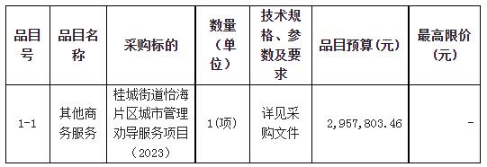桂城街道怡海片区城市管理劝导服务项目(2023)采购项目的潜在供应商应在广东省政府采购网https://gdgpo.czt.gd.gov.cn/获取采购文件,并于 2023年06月20日 09时00分 (北京时间)前提交响应文件。