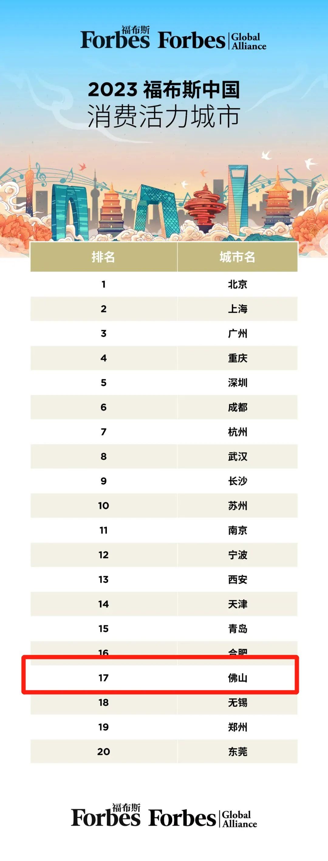 2022年起,佛山开始上榜福布斯中国·消费活力城市榜,且今年再度入围;不仅如此,根据中国消费者协会发布的《2022年100个城市消费者满意度测评报告》,佛山市消费者满意度高居全国第六、全省第一。
