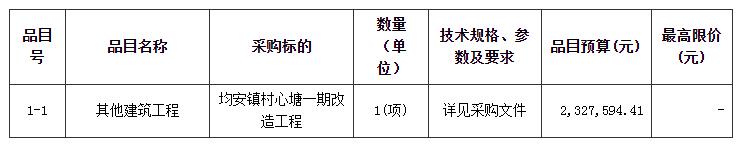 品目号 品目名称 采购标的 数量(单位) 技术规格、参数及要求 品目预算(元) 最高限价(元)