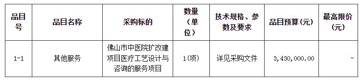 项目名称:佛山市中医院扩改建项目医疗工艺设计与咨询的服务项目