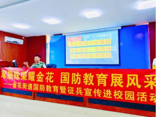 (图:金花街道国防教育暨征兵宣传进校园活动)