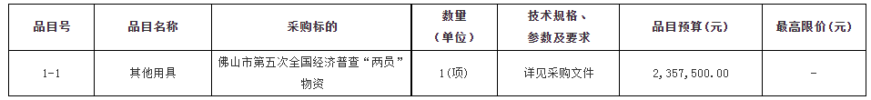 项目名称:佛山市第五次全国经济普查“两员”物资