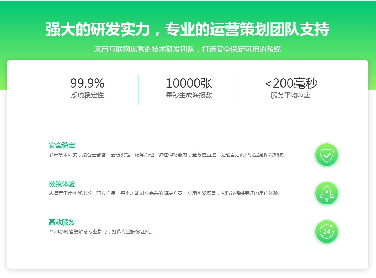 业内首创7天无条件退款,7x24小时技术监控,每周功能更新,提供多重保障。