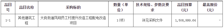 品目号 品目名称 采购标的 数量(单位) 技术规格、参数及要求 品目预算(元) 最高限价(元)
