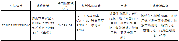 五、有意参与竞买者可于2023年6月26日后登录网上交易系统下载TD2023(SS)WP0011地块的《佛山市三水区国有建设用地使用权网上拍卖出让文件》。