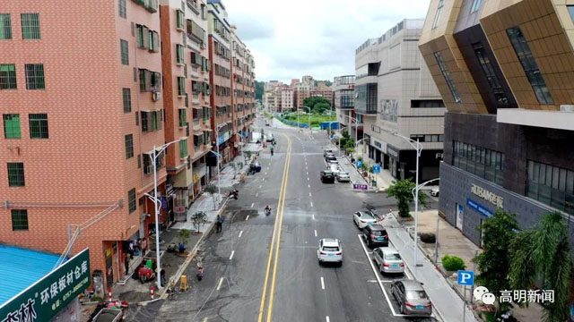 在新亨广场对面的禾洲村附近,一条新建的城市道路呈现在眼前,施工人员在已经完工的沥青路面取样检验,一台大型吊机把一面硕大的交通指路牌吊起来进行安装。高明区交通运输事务中心市政工程建设股股长谭东华介绍,交通指路牌预计安装完成后,此道路将开放通行。