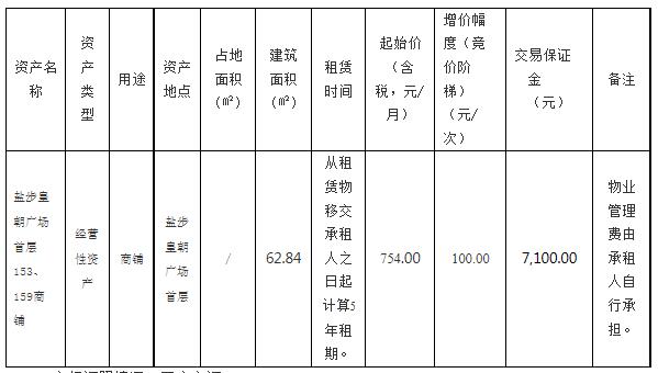 南海区大沥镇盐步皇朝广场首层153、159商铺网上租赁竞投公告