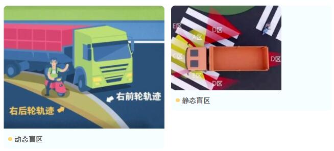 根据货车当前的状态,可以将其盲区范围分为动态盲区和静态盲区。