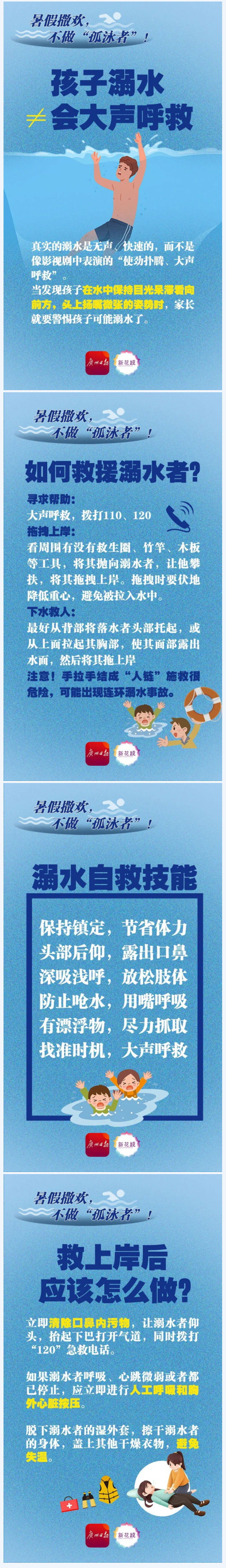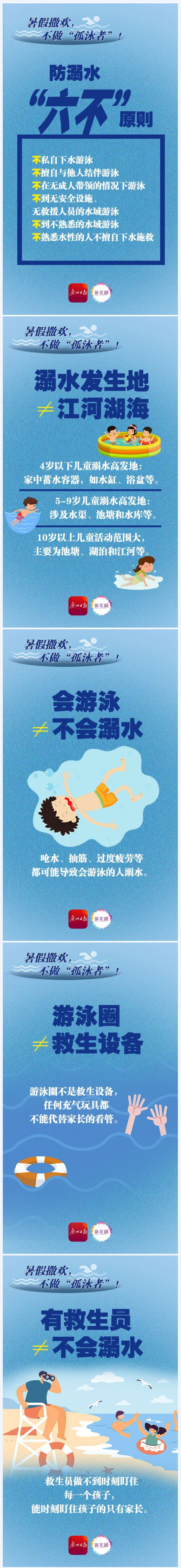 同时,请广大游泳爱好者提高安全防范意识,不要到野外河涌、池塘、水库等没有安全设施水域游泳,记住防溺水“六不”原则!