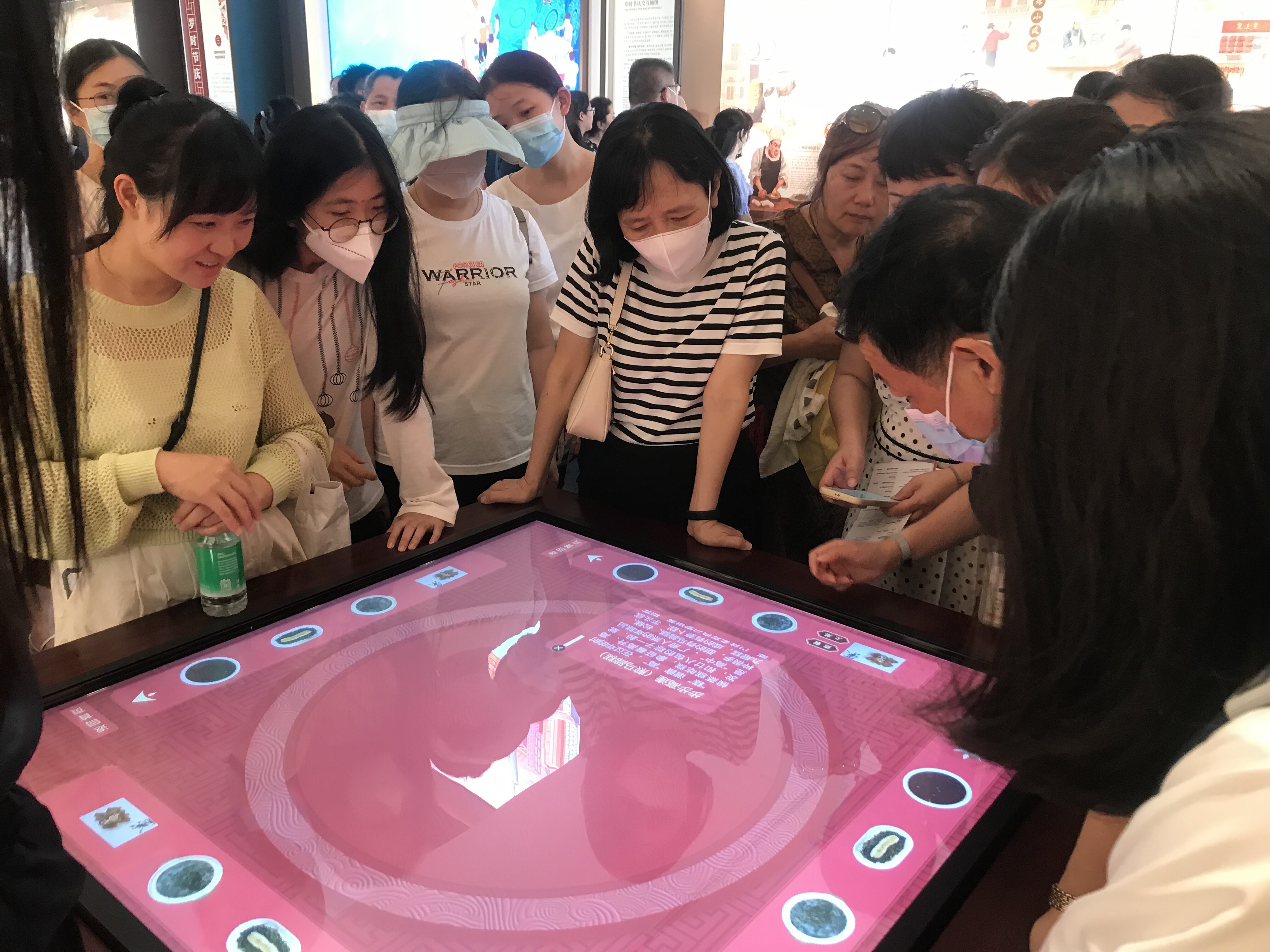广州市文化馆主要包含公共文化中心、翰墨园、广府园、广绣园、曲艺园等多组主题园林建筑,园中有园,园外有园,是一座风情浓郁的岭南园林,是广州新的文化地标。走进公共文化中心的广州非物质文化遗产展示馆,大家依次参观了《“一带一路”背景下的广作华章——从外贸商品到非遗保护》特展及《广州非物质文化遗产展——花城百花开》。“广作华章”特展以贸易为时间轴,讲述了在不同历史时期广彩、广绣、广州牙雕等传统广州工艺品生产模式、发展特点以及不断锐意进取让世界眼光向往东方的文化自信;“花城百花开”非物质文化遗产展是广州非遗总体面貌的常设展览,以“粤韵流芳”“食在广州”“岁时节庆”“医养岭南”“南拳强身”“广作华彩”“羊城古仔”“群星璀璨”展现广州文化传统犹如百花盛开的绚丽多姿。在“粤韵流芳”展区,大家了解广东音乐、岭南古琴、粤剧等广州人的传统娱乐方式,以歌抒情,以曲咏志;在“食在广州”展区,大家纷纷在“不时不食,以鲜为先”电子餐桌前化身大厨,完成色香味俱全的宴席;在“岁时节庆”展区,大家了解广州一年节庆中最具代表的生活方式;在“医养岭南”展区,大家了解广州的凉茶文化等;在“南拳强身”展区,大家跟着传承人学习传统南拳招式,变身武林高手;在中心阁五楼的观景平台,大家鸟瞰整个文化馆,园景一览无余,亭台楼阁高低错落,视野开阔,赏心悦目......随后,大家参观翰墨园、广府园、广绣园、曲艺园,园内丰富的展览、陈列等文化活动,让大家深刻感受到中华文化的博大精深,大家纷纷表示广州优秀传统文化令人回味无穷。