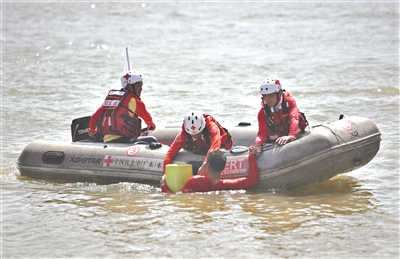 演练水上救生后转移救治