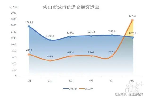 去年12月底佛山地铁3号线首通段开通运营以来,佛山城市轨交月客运量再迎量级提升,已连续6个月超1100万人次。