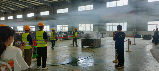 演练采取双盲模式,对我分局应急值班组、增城环境监测站、第三方技术支持单位(中核检修有限公司)及宁西街应急队伍开展突击考评,应急值班组现场运用无人机等科技手段对周边环境进行排查;应急监测组迅速制定了应急监测方案,按照相关监测技术规范,共设置9个采样监测点位进行监测;现场处置组人员对应急池溢出废水进行围截,对应急池的管道进行堵塞,使用抽污设备将应急池内的水体抽至吨桶,使用喷洒设备喷洒降解剂,对火灾燃烧区域上方有毒有害气体进行压制降解。