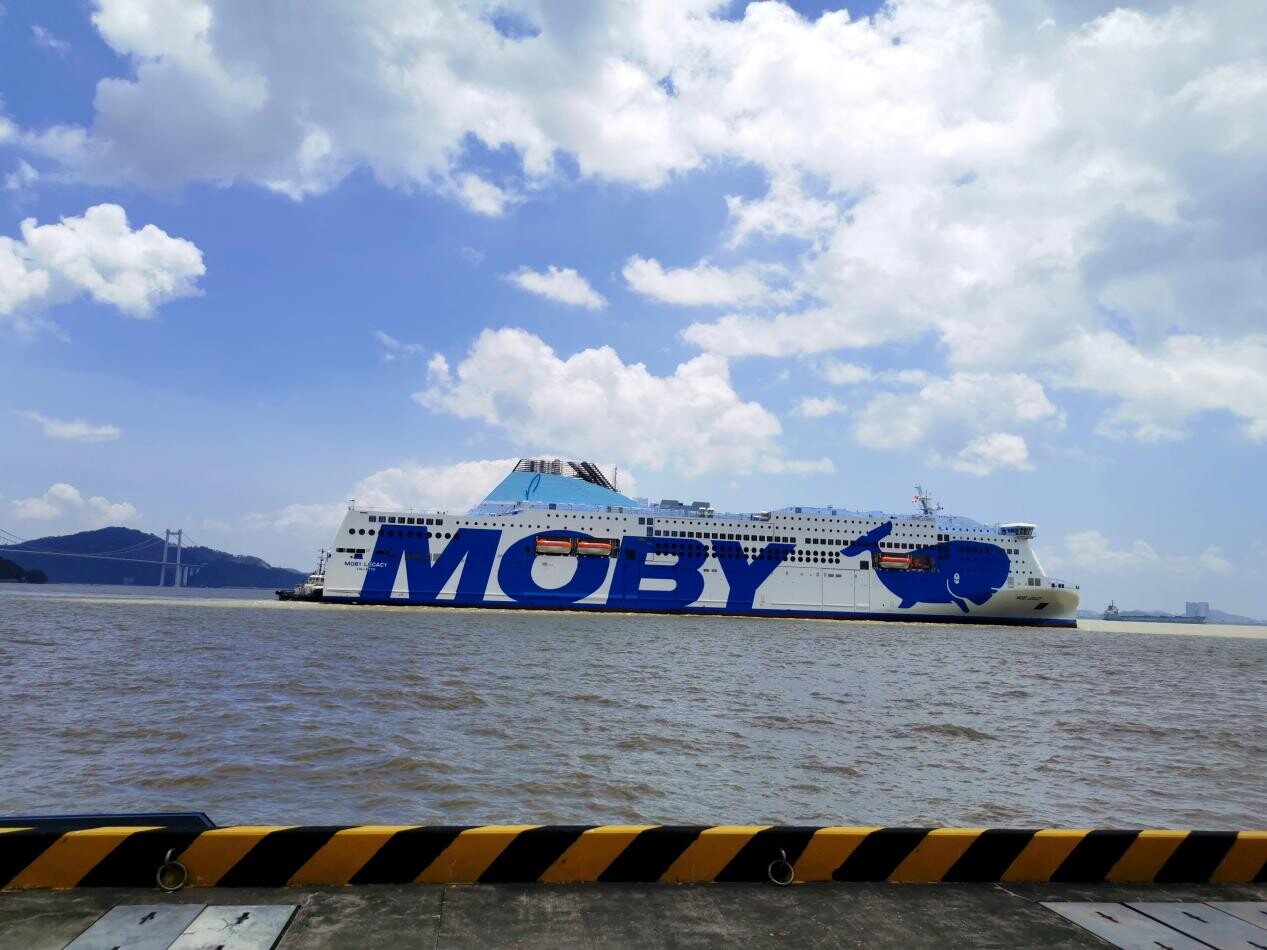 7月7日,由广船国际联合中船贸易为“一带一路”沿线国家意大利的MOBY Line航运公司建造的全球最大豪华客滚船——MOBY豪华客滚船2号船靠泊亮相南沙国际邮轮母港。