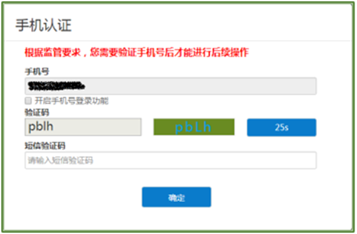 △学生在线系统登录后手机认证界面