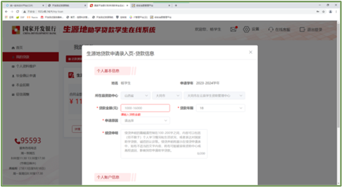 △学生在线服务系统填写贷款信息界面