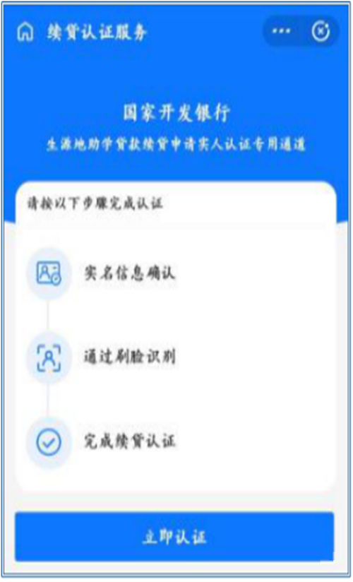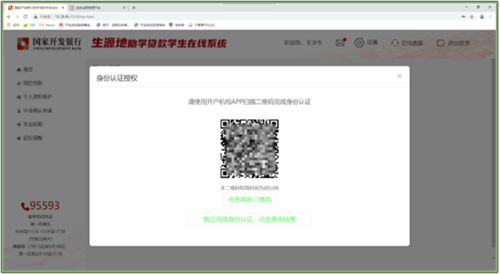 借款学生需使用电脑浏览器登录国家开发银行生源地助学贷款学生在线系统(以下简称“学生在线系统”https://sls.cdb.com.cn)提交续贷申请,在远程受理过程中使用支付宝app(招行app)人脸识别功能进行身份认证。