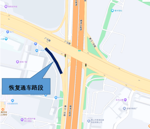 一、广云路往佛清从高速辅道西往南右转匝道恢复通车