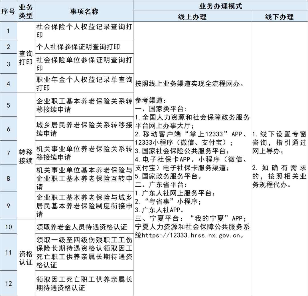 同时,在各自省政务服务网站开设“跨省通办”专栏,并引导群众通过“粤省事”小程序、广东人社、“我的宁夏”APP等渠道“掌上办”,办事群众在任一方地区选择需要办理的服务事项,并提交相应信息和材料,均可全流程在网上办理,实现“一地认证、全网通办”。