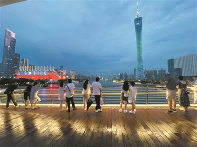 近期,广州夏日晚霞的美景刷屏,吸引了全国游客的目光。在天气晴好的日子,不少市民选择傍晚时分到城市地标体验Citywalk。谢女士喜欢到荔湾老街区夜间Citywalk,“永庆坊,老西关。听粤剧,看功夫。赞文创,尝小吃。”每当有外地朋友来广州,谢女士都推荐他们到永庆坊一带去夜游漫步,一站式沉浸式体验广府传统文化。