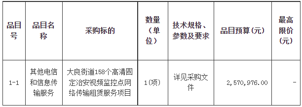 项目名称:大良街道158个高清固定治安视频监控点网络传输租赁服务项目