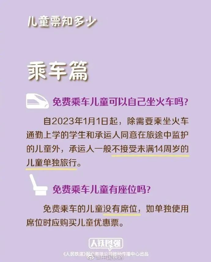 需要注意的是,儿童年龄按乘车日期计算。注意:免费乘车的儿童,如需单独使用席位,应购买儿童优惠票。