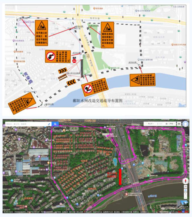 根据三龙湾水环境提升需求,将对外江水引入内河涌,改善内河涌水质,启动鄱阳南窦改造工程,需对佛陈大桥桥底(西侧)辅道100m范围内实施全围蔽施工,本次不影响东平路东西向通行,周边设置统一的导向警示标志。占道施工交通组织绕行情况如下: