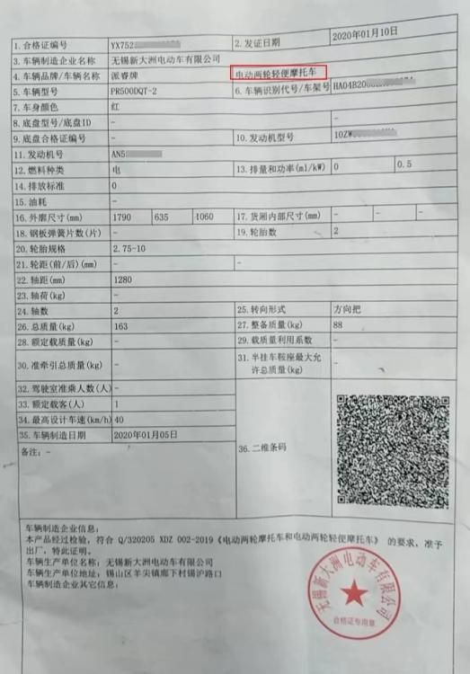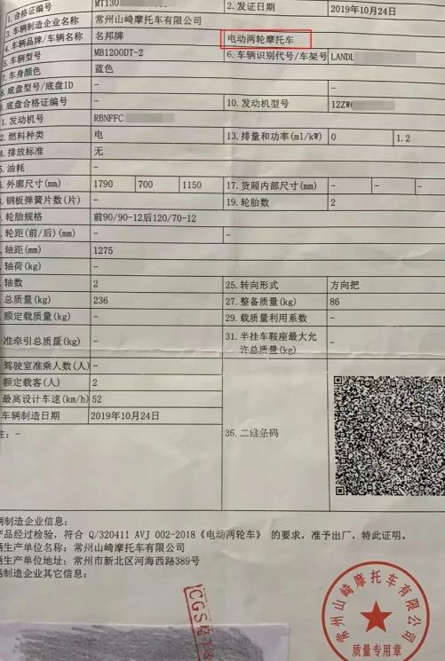 电动自行车、电动摩托车和电动轻便摩托车的合格证各有不同,且会清楚载明车辆类型属性。新国标电动自行车车架号是15位,而电动(轻便)摩托车车架号为17位,与汽车、普通摩托车相同。