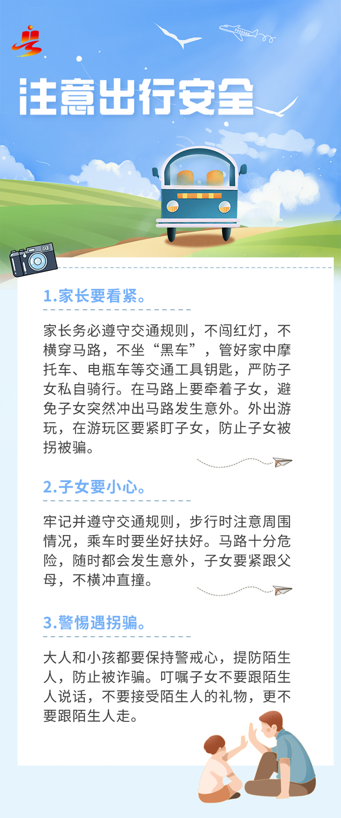 概述:安全无小事为了孩子们能度过一个“安全、快乐、充实”的暑期各位家长都要做好以下安全教育工作啦!......