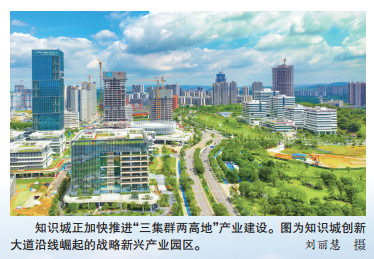 ——做强“三城一岛”战略平台,构筑高质量发展新空间。知识城加快完善“一核两心多园”空间布局,加快推进“三集群两高地”产业建设;科学城加快扩容提质步伐,持续推进国家“双创”示范基地建设;海丝城大力发展海丝数字、海丝贸易、海丝文旅、总部智造等新兴产业;生物岛加快形成“生物岛研发+三城生产”“生物岛总部+三城基地”产业协同模式。