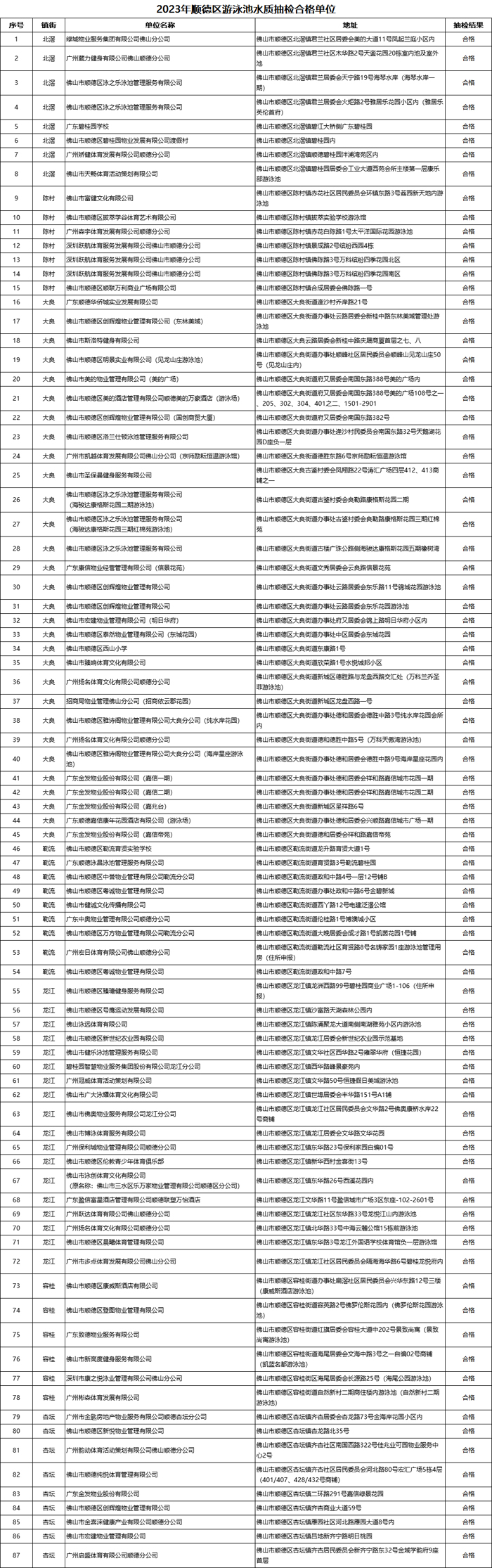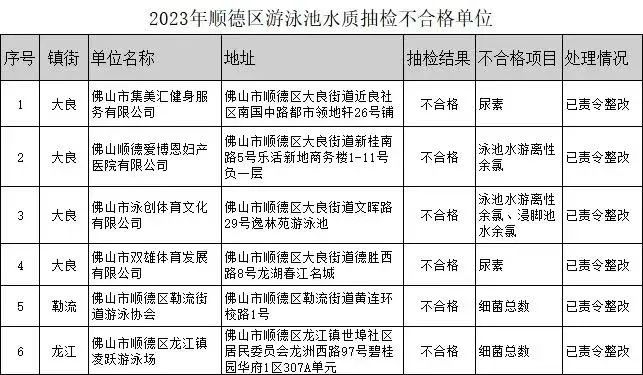下一步,顺德区卫生监督所将结合监督抽检进度适时对所有抽检的游泳池的检查结果进行公示,对监督抽检不合格的单位强化监督并督促落实整改。同时,也欢迎市民群众积极参与监督,投诉举报卫生状况差和经营不规范的游泳池,依法维护自身健康权益,共同营造一个卫生安全的游泳环境。