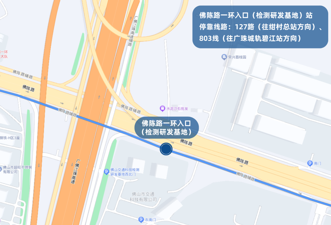 增加停靠:佛陈路一环入口(检测研发基地)站。
