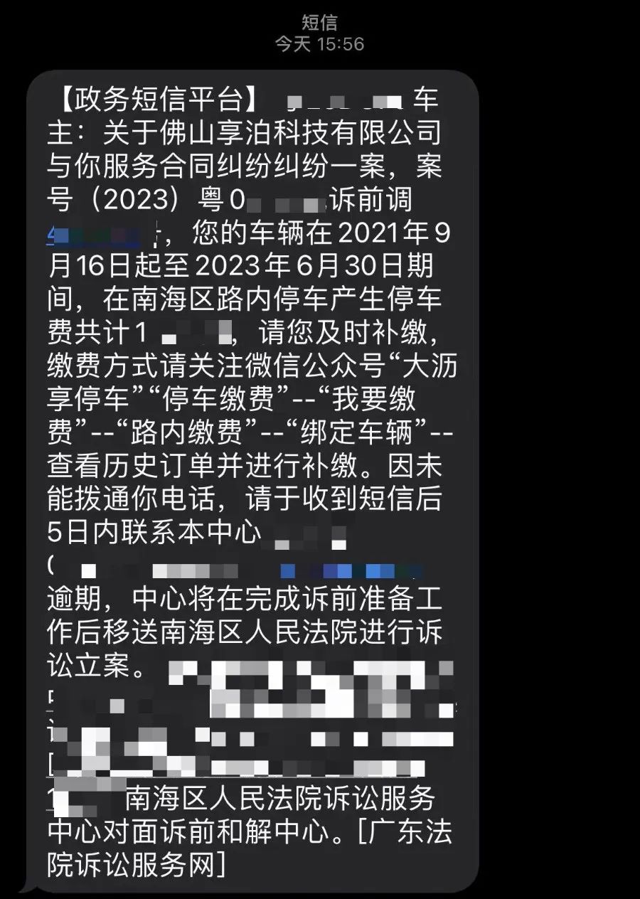 目前,佛山享泊科技有限公司已向南海区人民法院提交诉讼材料,对其进行诉前调解,不能调解的将申请立案追缴。诉前调解工作已常态化持续开展。请存在欠费行为的车主接到诉前调解电话时积极协商处理!