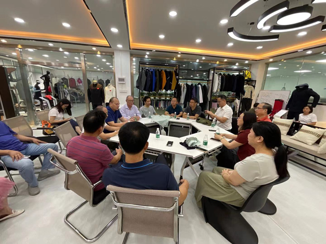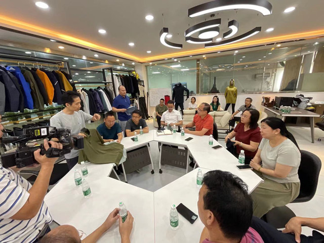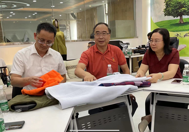 8月3日下午佛山市政协调研组一行十人到禅城区张槎玉带制衣城中心宝仕龙无缝服饰公司调研。无缝服装产业创新联合体4家企业老总汇报发言,与政府官员交流互动。广职院服装学院院长也介绍了学院同联合体产教融合开展师资培训、教材编写和共建实训基地的情况。组长、市政协经科委主任徐平对无缝服装联合体及广职院所取得的成绩连声称赞,称这几家企业都有绝活,是"专精特新"的好苗子企业。政府各部门要加以帮扶指导。还向宝仕龙无缝服装公司郭裕辉总经理提出,推荐郭总同市长面对面交流对话。让佛山无缝服装产业得到更大的发展。