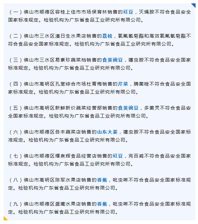 佛山最新食品抽检结果出炉!